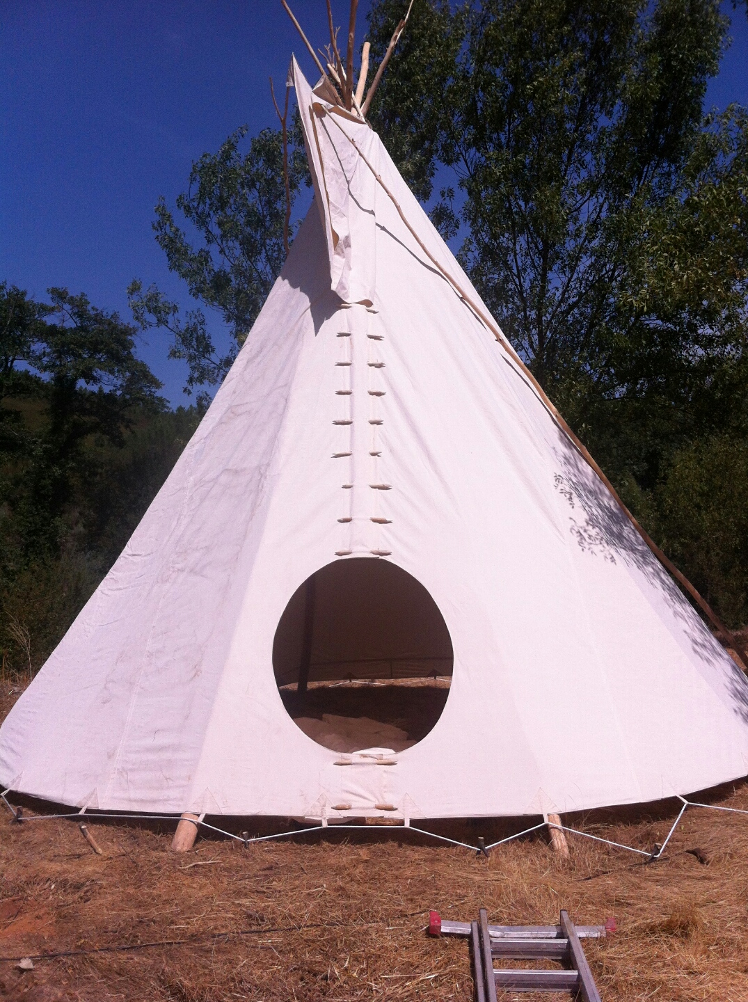 When complete (outer cover and "lining" inside) our tipis are cool and pleasant in the summer; due to the circulation of air between the two layers of canvas, and warm and dry in winter; due to the isolation given by the inner lining.