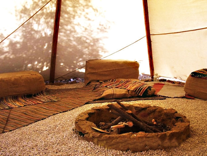 El tipi también se puede usar como un espacio de reunión (en este caso, caben más personas) o para yoga, masajes o sala de meditación ... En cualquiera de esos casos, debe tener en cuenta que las paredes tienen una inclinación, por lo que pierden espacio en altura, por lo que es aconsejable usar muebles bajos, para hacer un mejor uso del espacio.